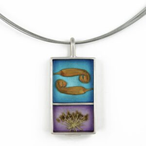 Compartment Pendant: geranium and eucalptus on red and smoky black