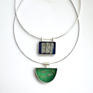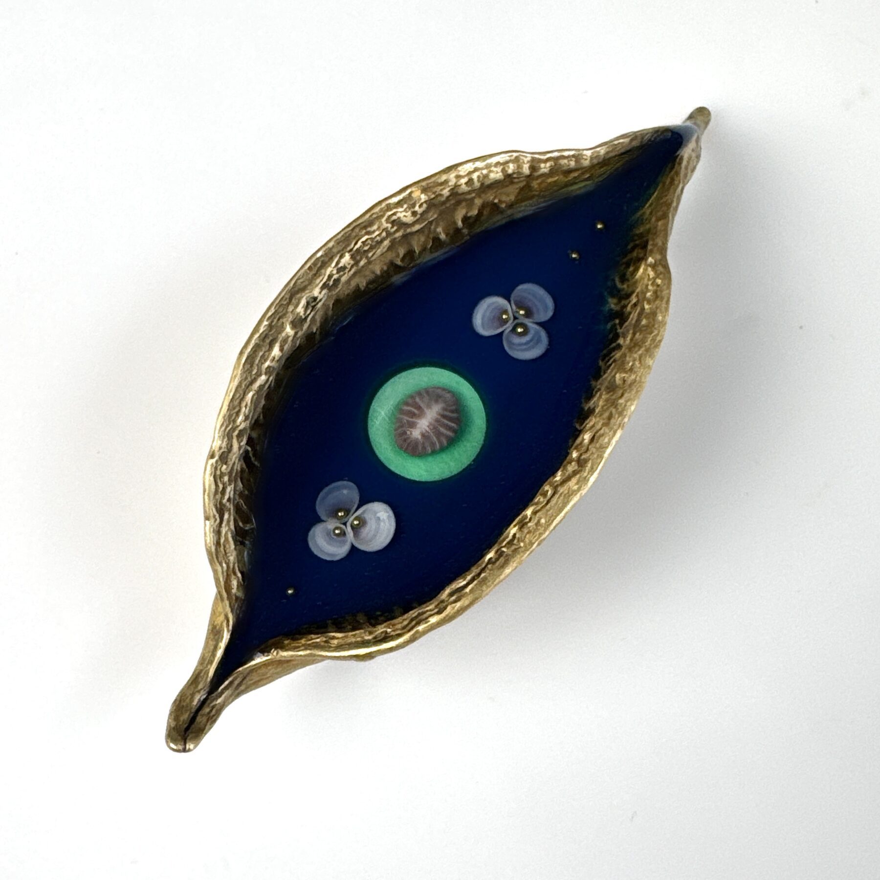 bronze pod – shells on deep navy Description Description: tiny shells, silver balls, embedded sterling silver, resin, pigment, patinated bronze casting of Australian bottle tree pod Size: 4 x 1.5 x 1″ $260.00 bronze pod - shells on deep navy quantity Add to cart Add a chain Sterling Silver Cable Neckwire $50.00 Select options This product has multiple variants. The options may be chosen on the product page Stainless Steel 5-Strand Cable $40.00 Select options This product has multiple variants. The options may be chosen on the product page Sterling Silver Snake Chain $38.00 – $50.00 Select options This product has multiple variants. The options may be chosen on the product page Sterling Silver Link Chain $34.00 – $38.00 Select options This product has multiple variants. The options may be chosen on the product page